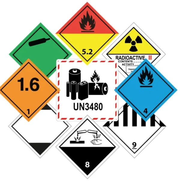 A bárcák alakban, színben, méretben, jelképekben és feliratokban teljes mértékben megfelelnek a veszélyes áruk szállítására vonatkozó nemzetközi előírásoknak.