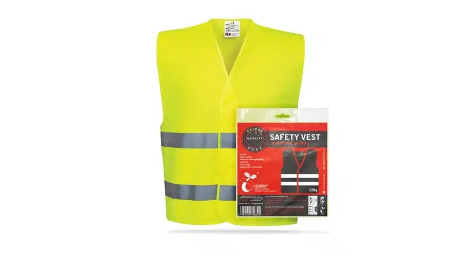 Ez a sárga láthatósági mellény minden közúti járművezető számára alapvető biztonsági eszköz, különösen veszélyes áru szállítása során. Az ADR 8.1.5 fejezet előírja, hogy a jármű személyzetének rendelkeznie kell EN ISO 20471 szabvány szerinti fényvisszaverő mellénnyel, mivel ez a kötelező ADR felszerelések részét képezi.