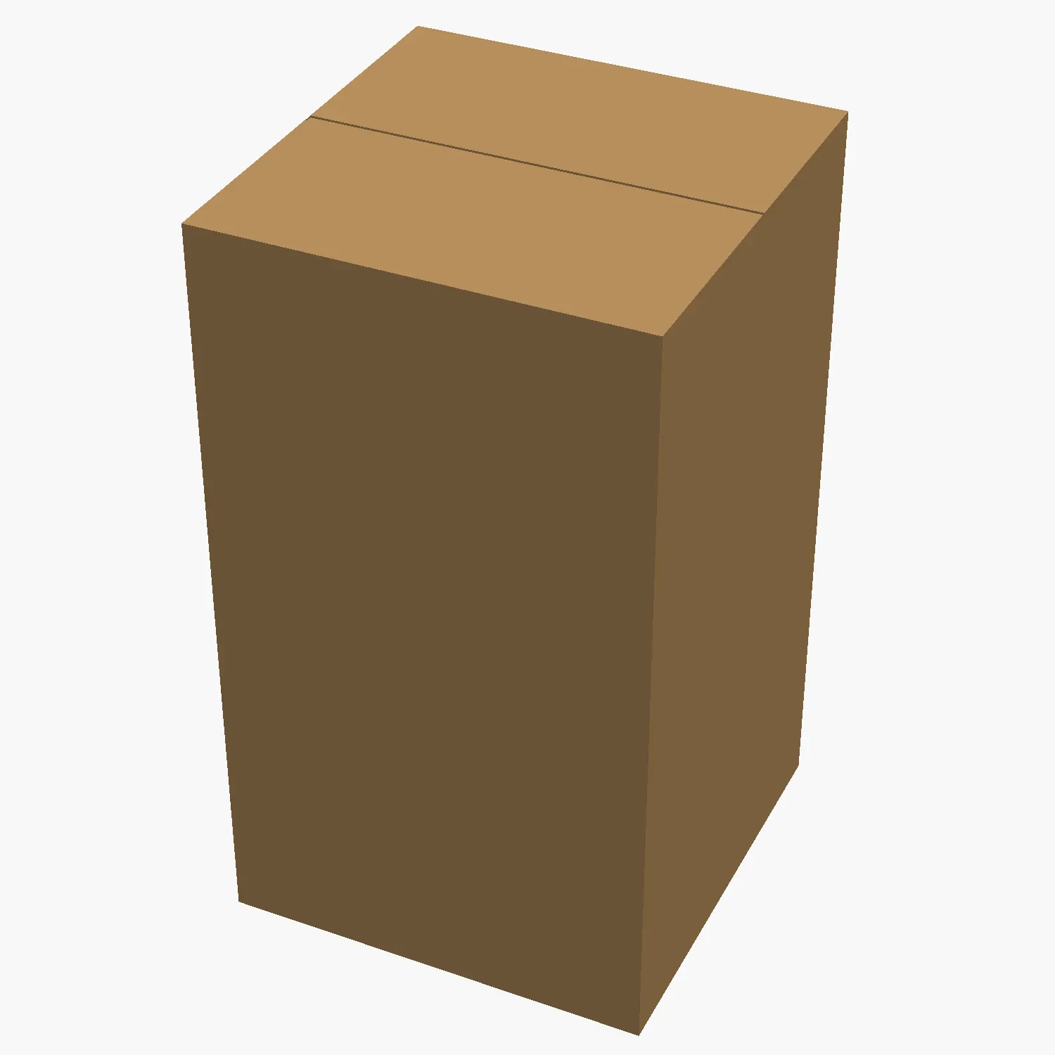 Hivatalos megnevezés: papírlemez láda. Háromrétegű C-hullám kartondoboz (SC5S, ECT 7.32 kN/m), külső csomagolásként kombinált csomagolásokhoz.
